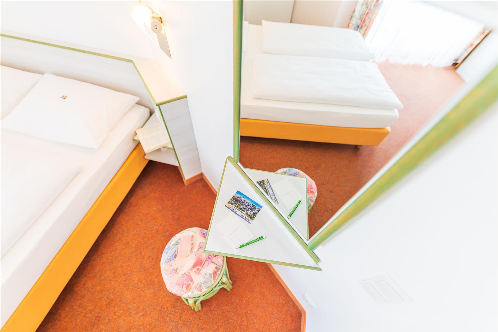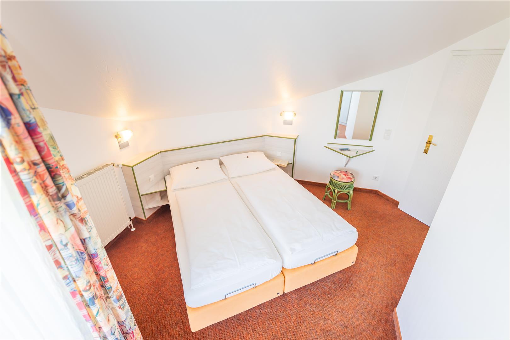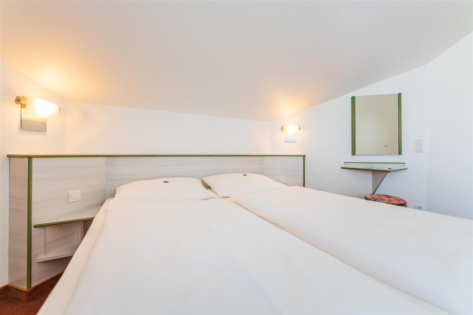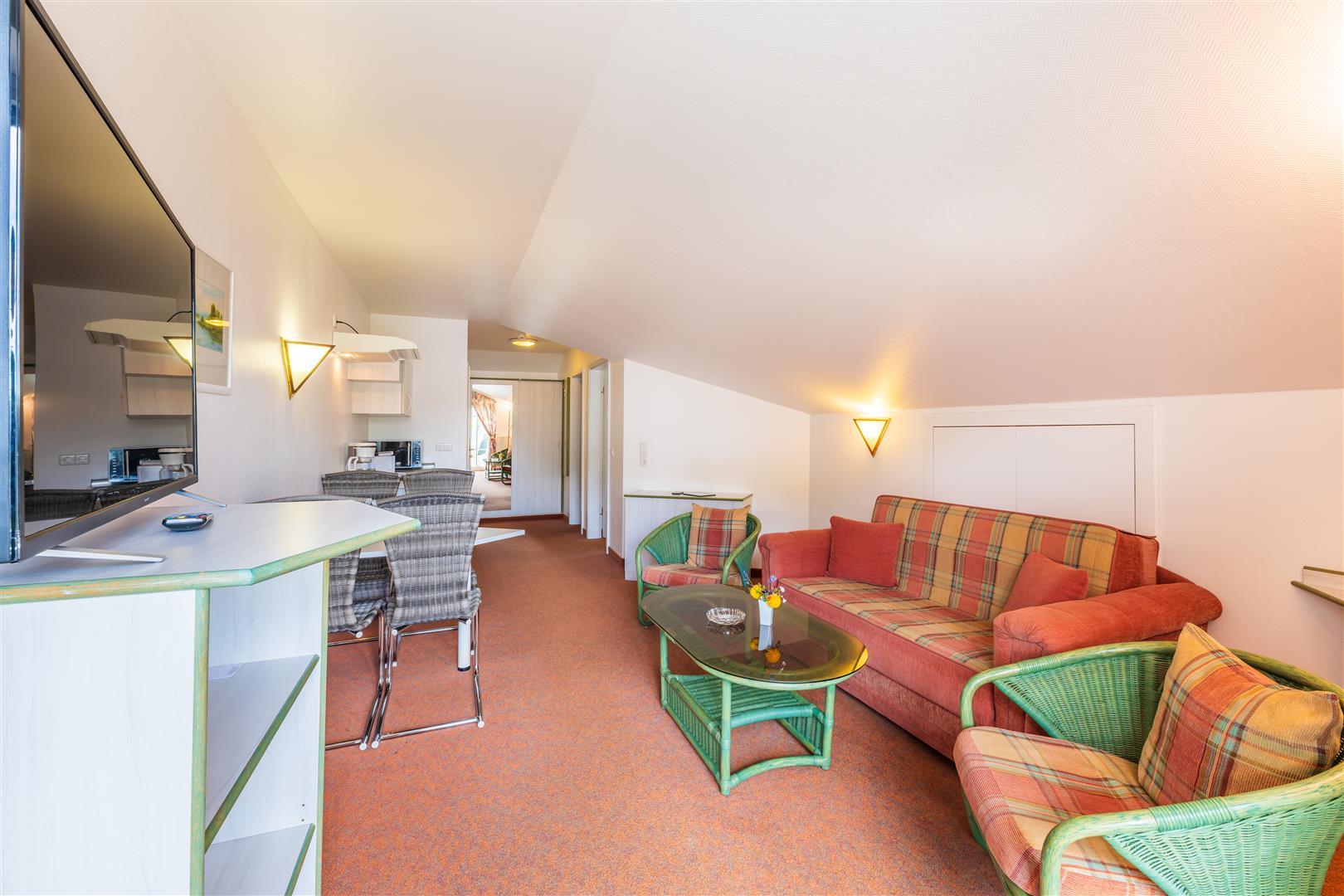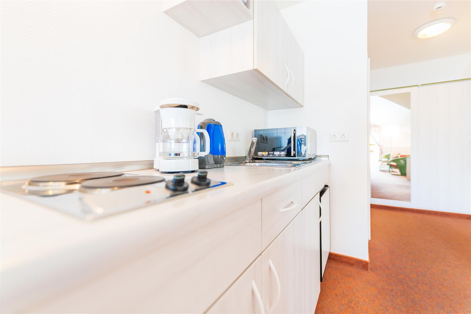 Unsere gemütlichen Appartements (ca. 40 qm) besitzen 1 Wohn- /Schlafraum, 1 separates Schlafzimmer mit Doppelbett, 2 Balkone, LCD Flat-TV, Telefon, Pantryküche.